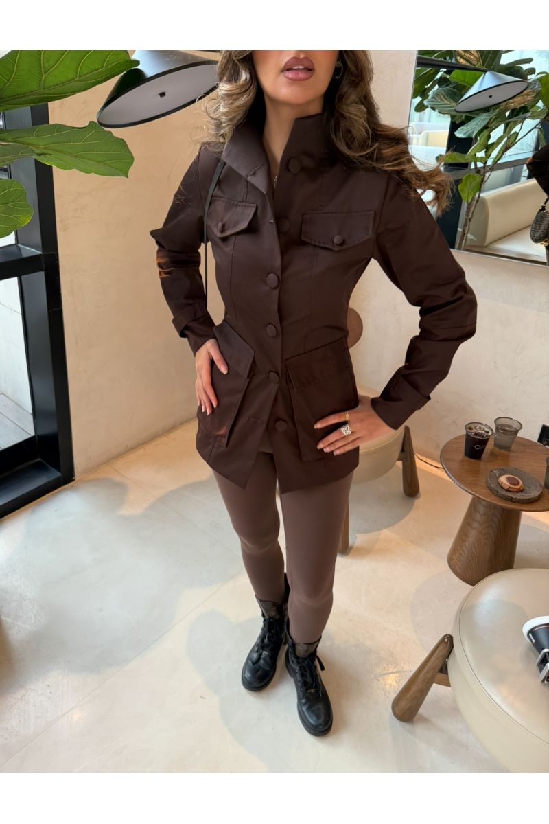 LÉA jacket Length is 28 ( adjustable) . Soft structure, smooth buttons, and functional pockets. Pre-order only, non-returnable. Model is 177 cm wearing size S.