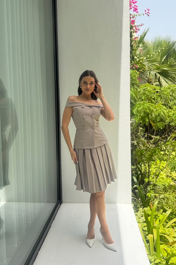 An elegant set designed for Eid. Includes a top and skirt crafted from premium cotton jacquard. Skirt length is 23 inches (not adjustable). Pre-order only. No returns or exchanges