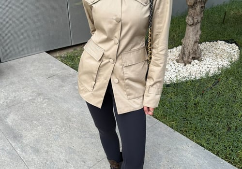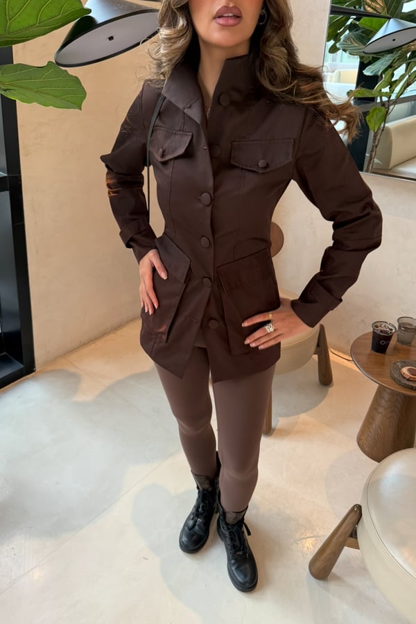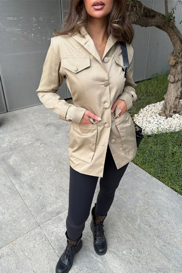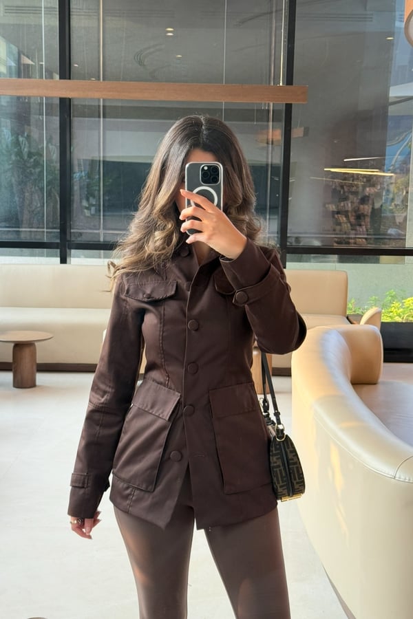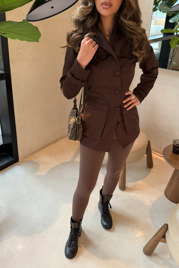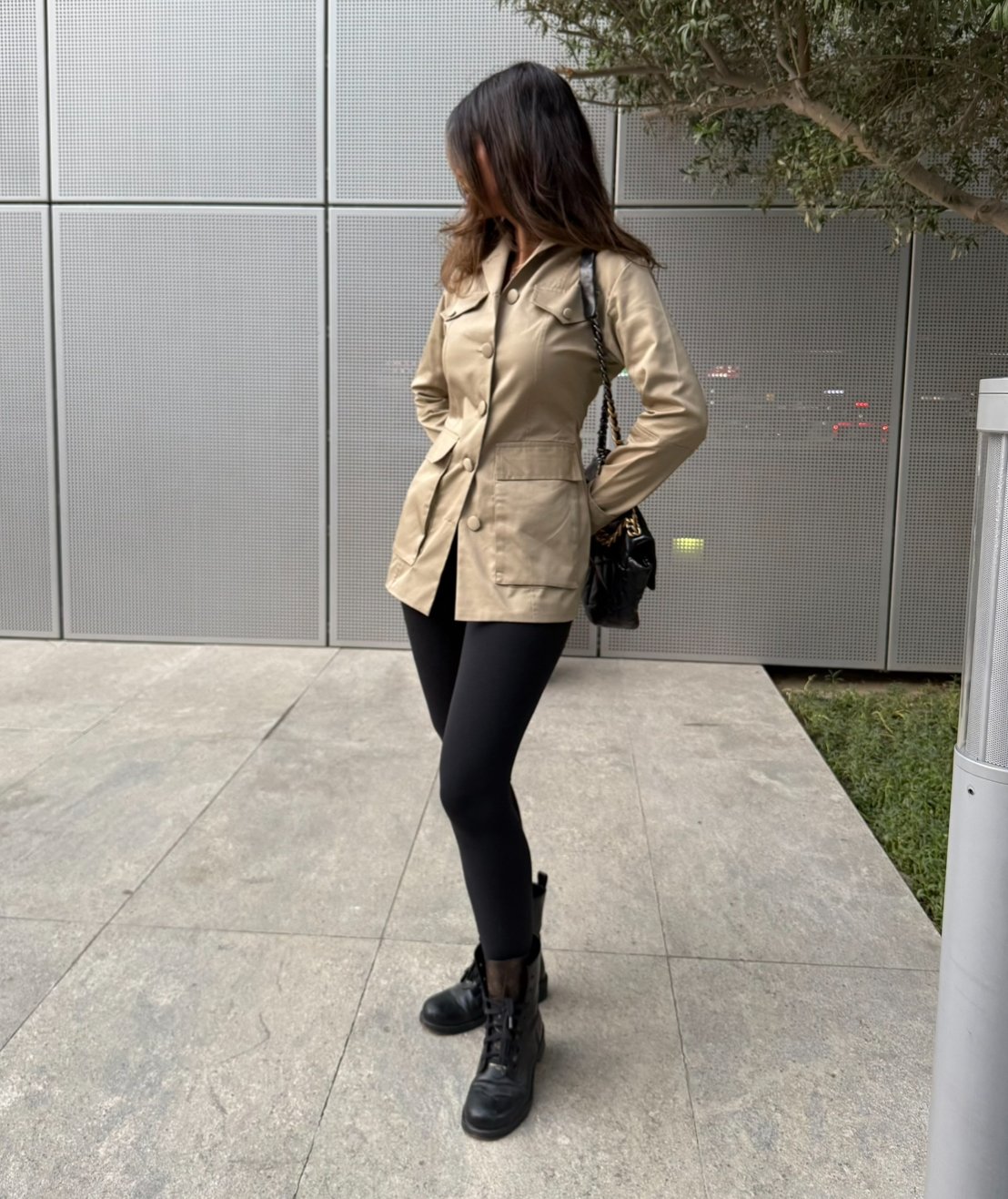 LÉA jacket Length is 28 ( adjustable) . Soft structure, smooth buttons, and functional pockets. Pre-order only, non-returnable. Model is 177 cm wearing size S.