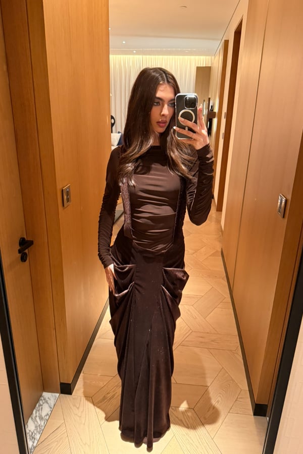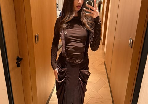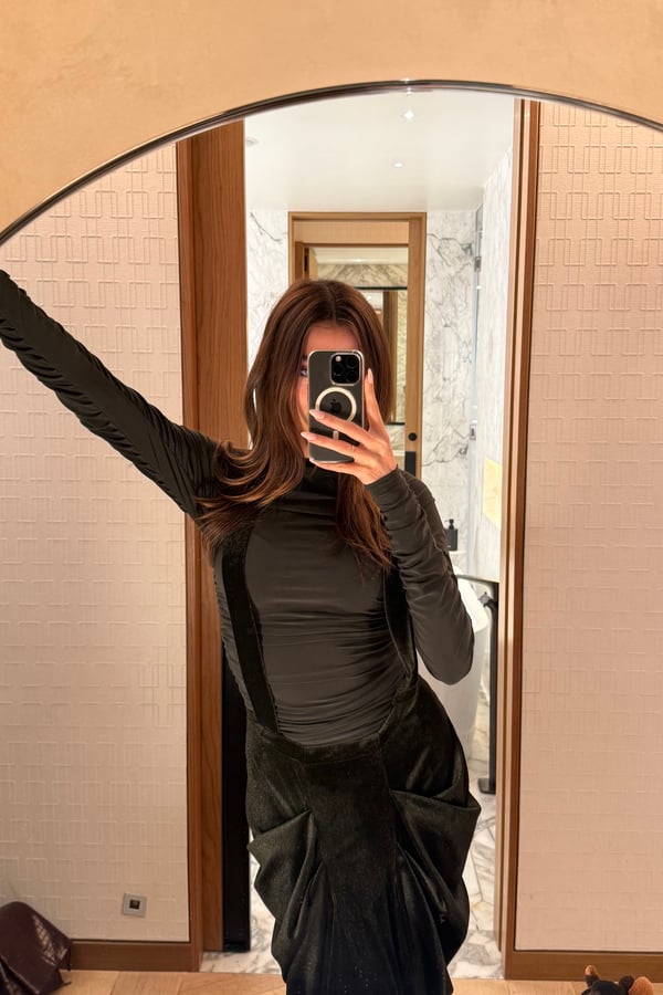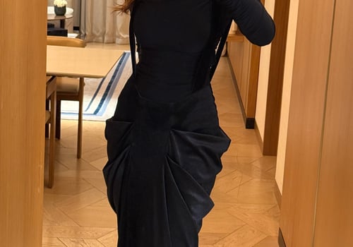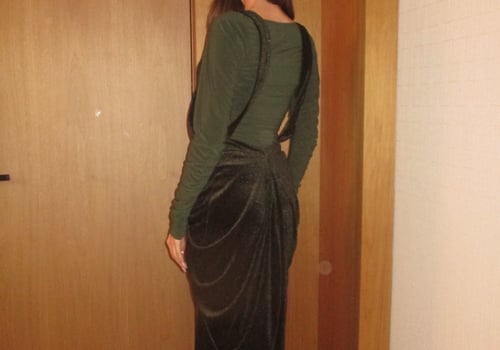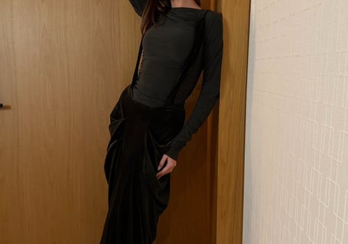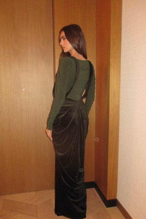 A sleek two-piece set featuring a stretchy fitted dress paired with a low-waisted suspender skirt. The structured straps create a modern, overall-style silhouette while maintaining a clean, refined look, perfect for elevated evenings pre order no return
