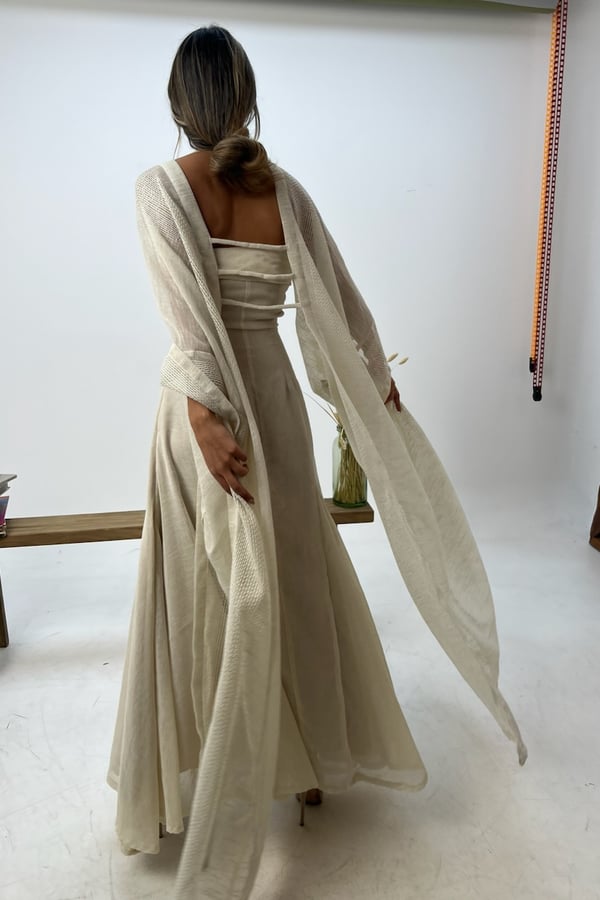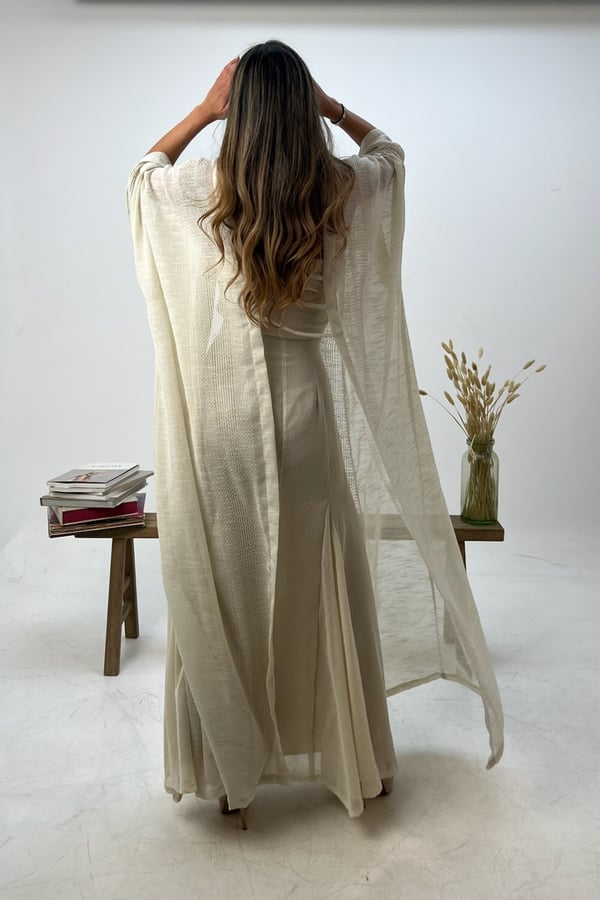 Daraa & bisht set Model is wearing Xs and daraa’s length 55in, it’s adjustable.